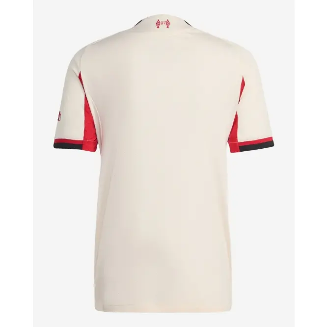 Created to represent Liverpool FC’s iconic home ground on away days, this LFC adidas Mens 25/26 Authentic Away Jersey displays a specially made crest whose shape was inspired by the arched gable atop Anfield’s old Main Stand. Designed to help the team win on the road, this performance-focused football shirt comes in an off-white shade that will be familiar to Reds who know their history.