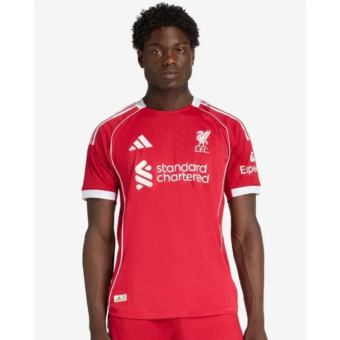 Kicking off our third spell together, this LFC adidas Mens 25/26 Authentic Home Jersey brings some real mid-’00s football vibes with a clean, crisp look framed by white piping. Created for stirring Anfield performances, it’s the shirt the players wear on match days. Perched proudly on the chest, a Liver Bird badge brings hope to every fan’s heart.