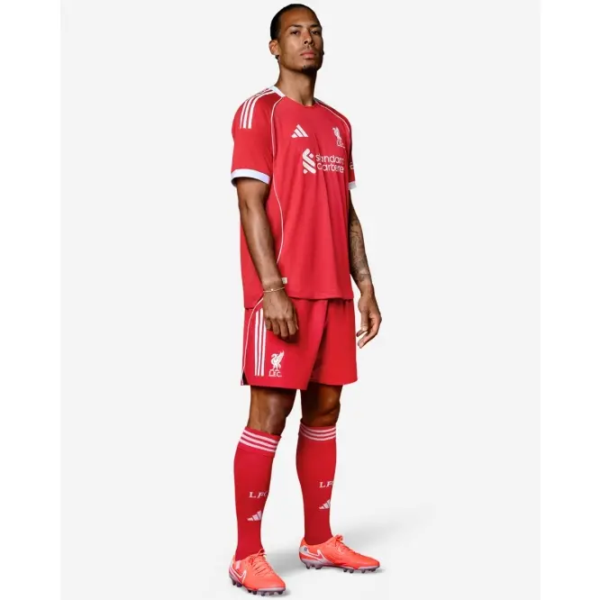 WELCOME HOME. LIVERPOOL RETURN TO THE 3 STRIPE FAMILY WITH A CLASSIC RED & WHITE HOME KIT. UNMISTAKABLY LIVERPOOL, UNMISTAKABLY ADIDAS.