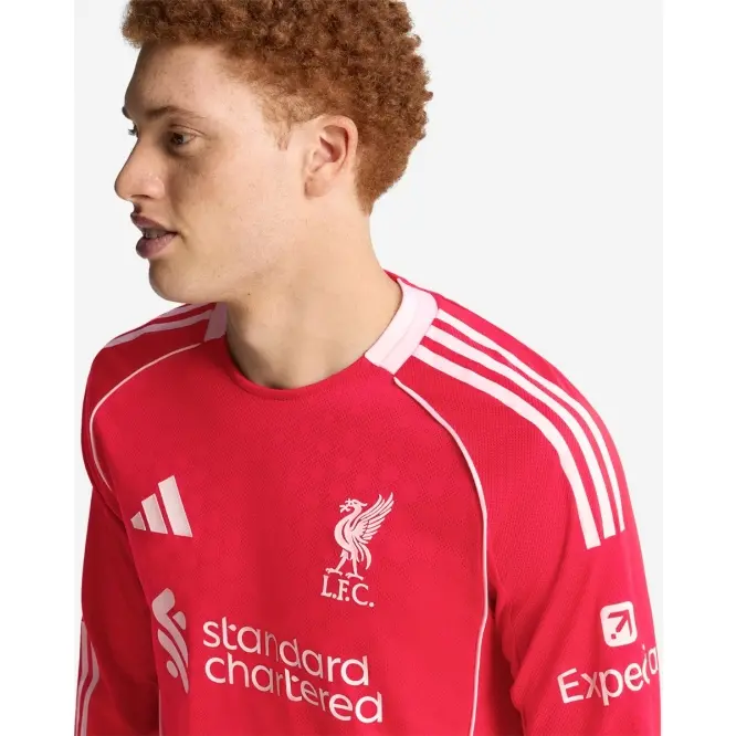 Kicking off our third spell together, this LFC adidas Mens 25/26 Authentic Home Long Sleeve Jersey brings some real mid-’00s football vibes with a clean, crisp look framed by white piping. Created for stirring Anfield performances, it’s the shirt the players wear on match days. Perched proudly on the chest, an LFC Liverbird badge brings hope to every fan’s heart.