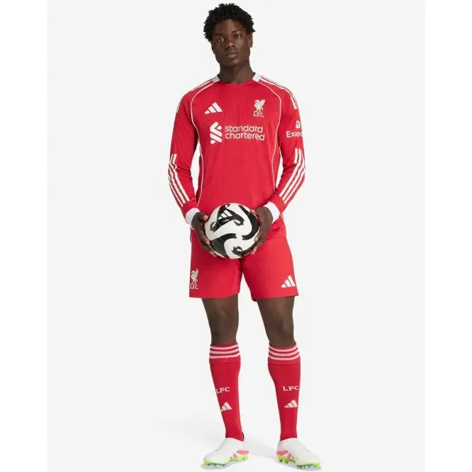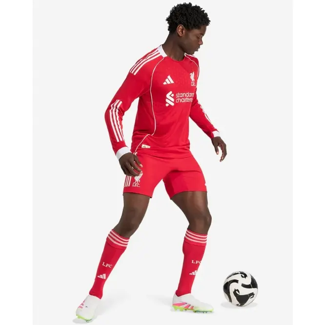 Kicking off our third spell together, this LFC adidas Mens 25/26 Authentic Home Long Sleeve Jersey brings some real mid-’00s football vibes with a clean, crisp look framed by white piping. Created for stirring Anfield performances, it’s the shirt the players wear on match days. Perched proudly on the chest, an LFC Liverbird badge brings hope to every fan’s heart.