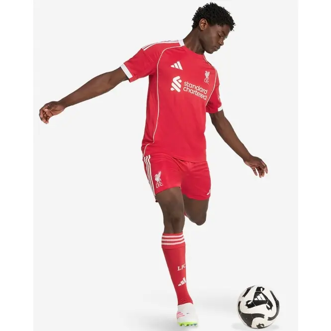 Kicking off our third spell together, these LFC adidas Mens 25/26 Home Shorts belong to a kit that channels a look from last time around. A symbol of football hope, an LFC Liverbird perches just above the hem. Moisture-managing AEROREADY keeps fans dry through every limb-strewn celebration.