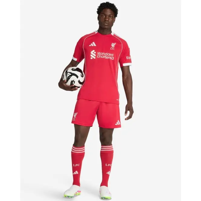 Kicking off our third spell together, these LFC adidas Mens 25/26 Home Shorts belong to a kit that channels a look from last time around. A symbol of football hope, an LFC Liverbird perches just above the hem. Moisture-managing AEROREADY keeps fans dry through every limb-strewn celebration.