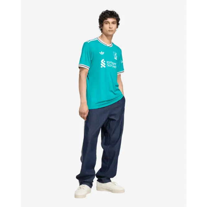 A modern football classic inspired by Liverpool FC’;s storied 3-Stripes history. The tonal vertical stripes on this elegant Third Jersey come in unmistakable adidas equipment Green. On the chest, that vintage club badge shares the spotlight with a Trefoil for the first time since 1991. Created for travelling Reds, this shirt includes moisture-managing AEROREADY so it feels as good as it looks.