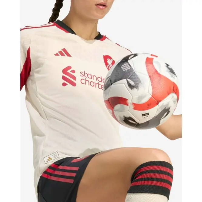 Created to represent Liverpool FC’;s iconic home ground on away days, this LFC adidas Womens 25/26 Authentic Away Jersey displays a specially made crest whose shape was inspired by the arched gable atop Anfield’;s old Main Stand. Designed to help the team win on the road, this performance-focused football shirt comes in an off-white shade that will be familiar to Reds who know their history.