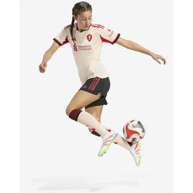Created to represent Liverpool FC’;s iconic home ground on away days, this LFC adidas Womens 25/26 Authentic Away Jersey displays a specially made crest whose shape was inspired by the arched gable atop Anfield’;s old Main Stand. Designed to help the team win on the road, this performance-focused football shirt comes in an off-white shade that will be familiar to Reds who know their history.