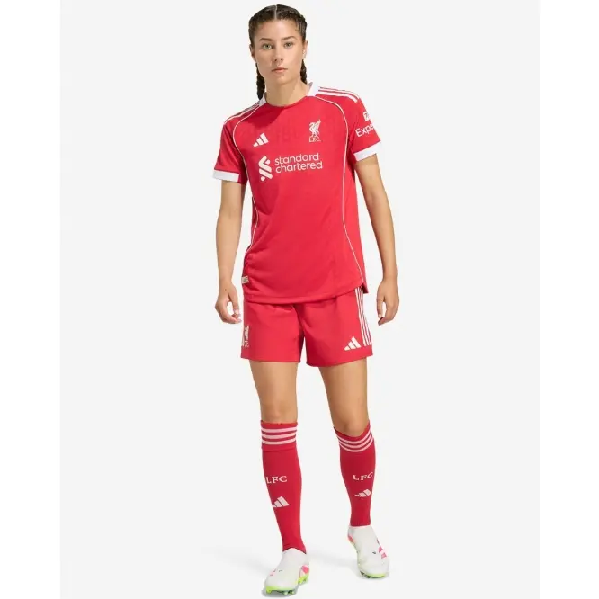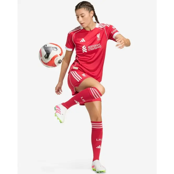 Kicking off our third spell together, this LFC adidas Womens 25/26 Authentic Home Jersey brings some real mid-‘;00s football vibes with a clean, crisp look framed by white piping. Created for stirring Anfield performances, it’;s the shirt the players wear on match days. Perched proudly on the chest, an LFC Liverbird badge brings hope to every fan’;s heart.