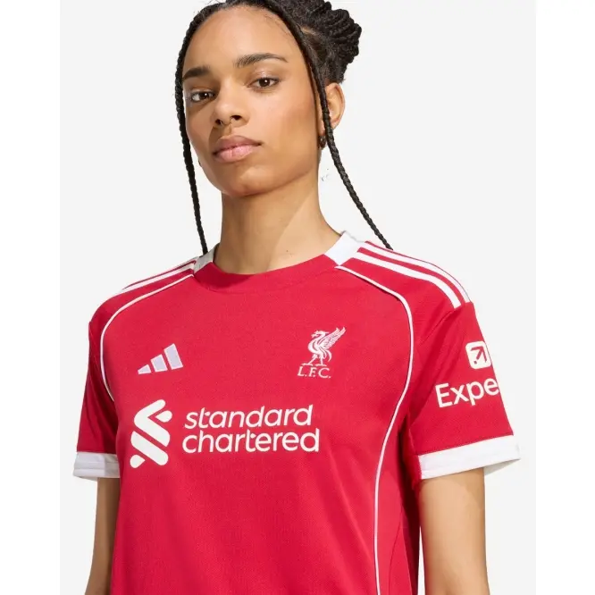 Kicking off our third spell together, this LFC adidas Womens 25/26 Home Jersey brings some real mid-‘;00s football vibes with a clean, crisp look framed by white piping. Through dreams and songs, moisture-managing AEROREADY keeps fans comfortable, while a Liverbird on the chest can’;t fail to bring hope to your heart.