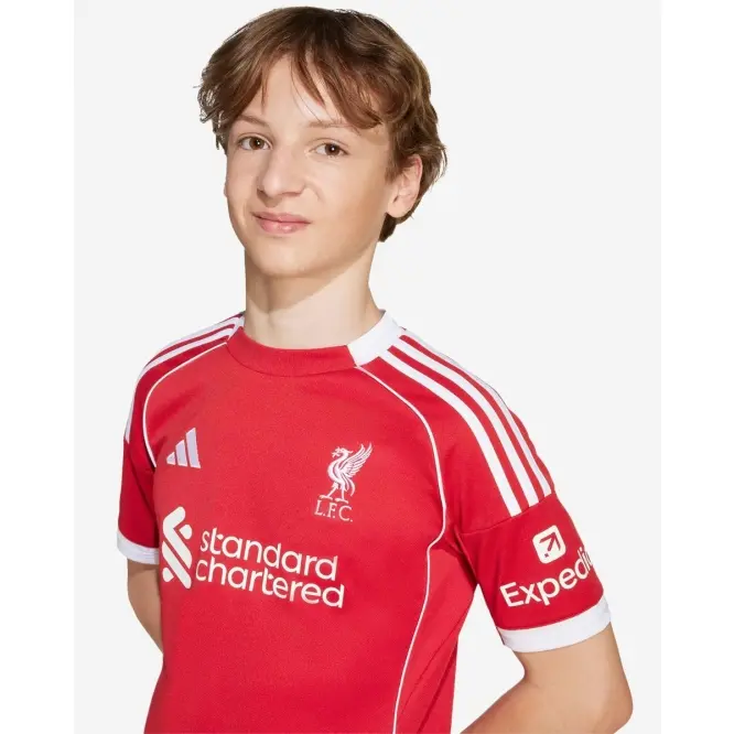 Kicking off our third spell together, this LFC adidas Youth 25/26 Home Jersey brings some real mid-‘;00s football vibes with a clean, crisp look framed by white piping. Through dreams and songs, moisture-managing AEROREADY keeps fans comfortable, while a Liverbird on the chest can’;t fail to bring hope to your heart.