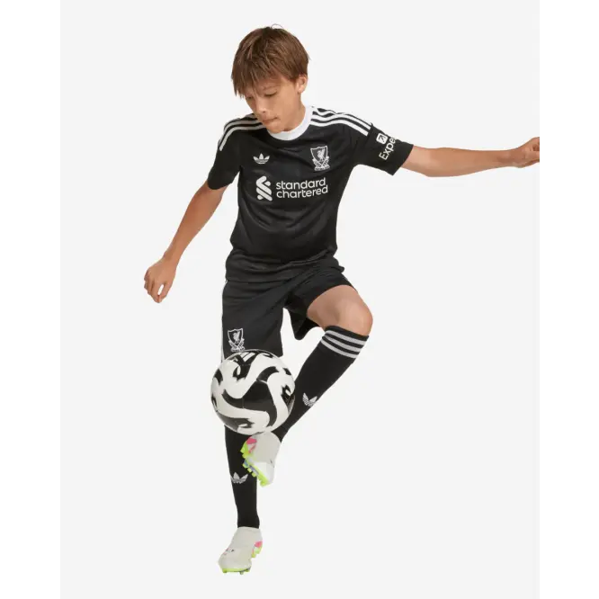 Created to keep clean sheets on the road, this LFC adidas Youth 25/26 Third Short Sleeve Goalkeeper Jersey shares its Trefoil and vintage club crest with the club’s Third kit outfield shirts. Clad in imposing black colours, it’s designed to stretch with your every movement for first-class Goalkeeping. Behind the scenes, AEROREADY manages moisture to keep you focused on every Football threat.