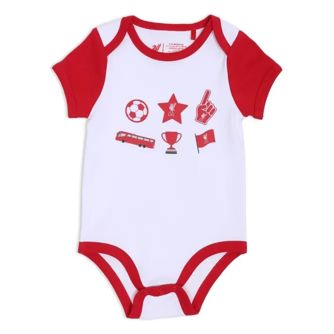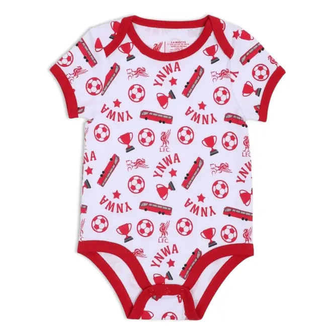 - Baby bodysuits 2 pack with Liverpool FC themed all over repeat graphic print designs.