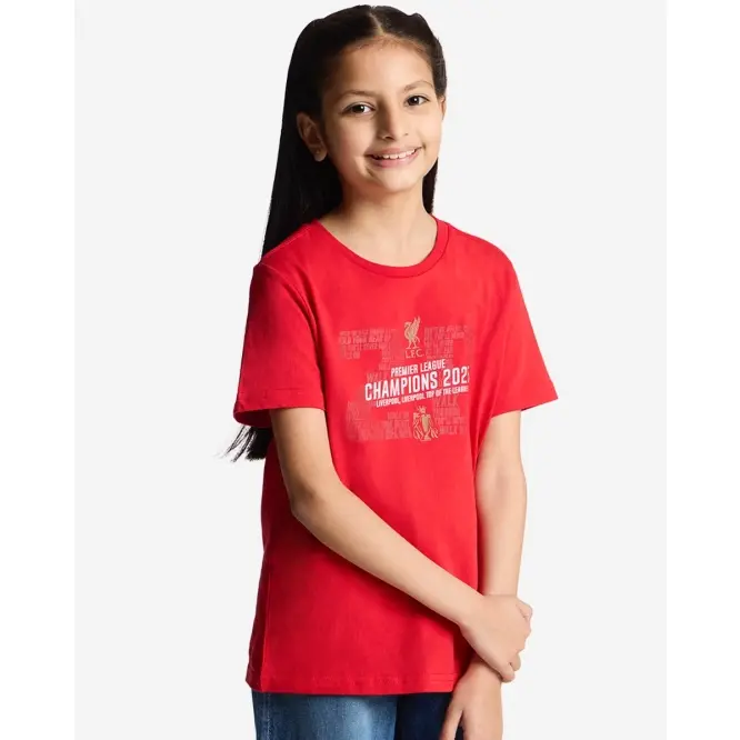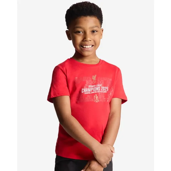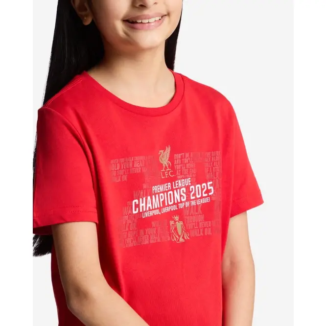 Celebrate Liverpool FC’s record 20th League Title with the LFC EPL Champions 24/25 Juniors Tee Red, featuring a proud display that the Reds are Champions again!