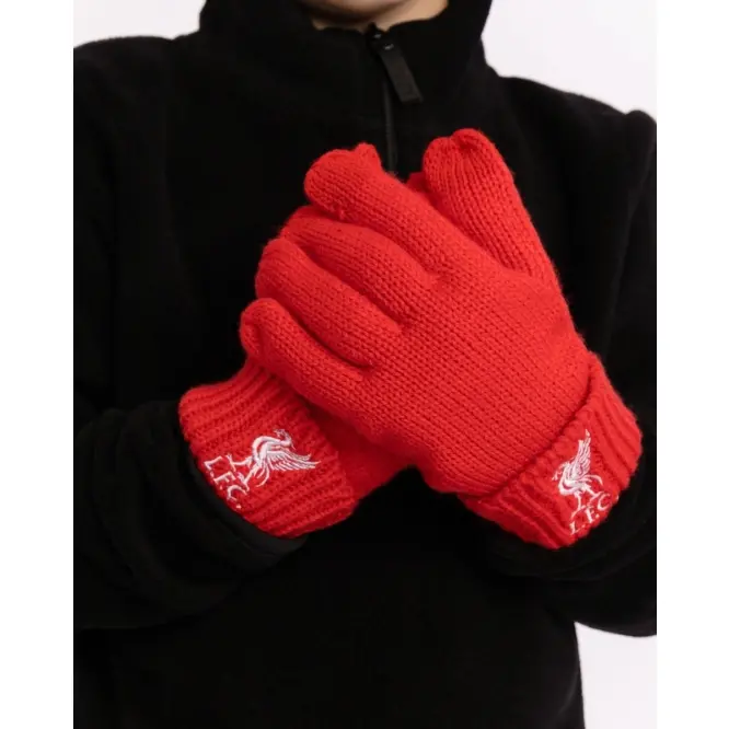 Featuring: Red ribbed glove Liverbird crest embroidered detailing in white