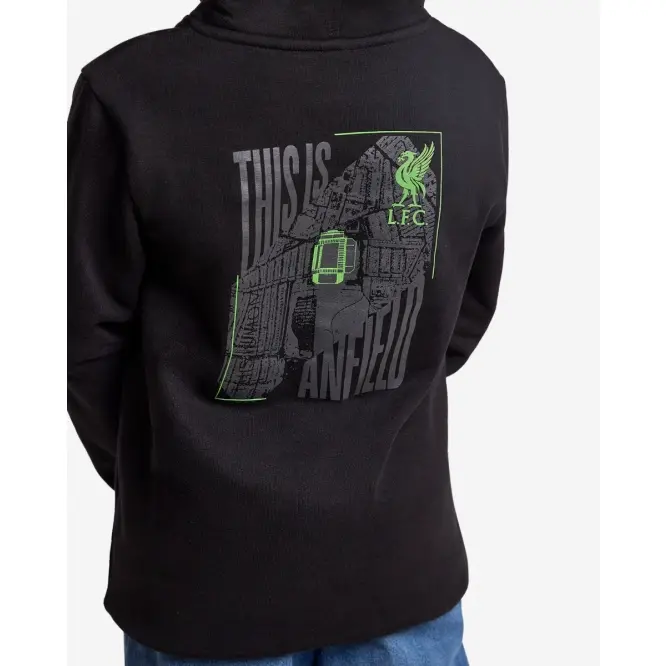 - Juniors hoody with LFC Liverbird graphic print to front and This Is Anfield graphic print design to back.