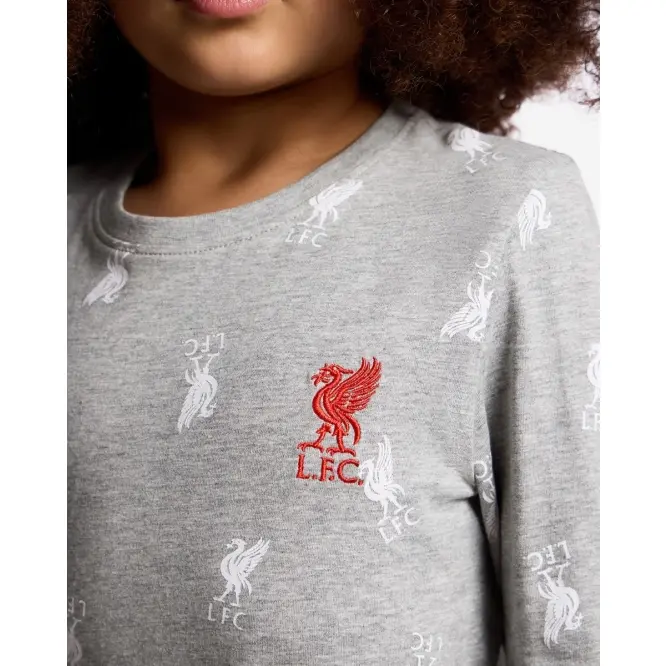 - Grey long sleeve & pants Juniors pyjama set with Liverpool FC details for Girls.
