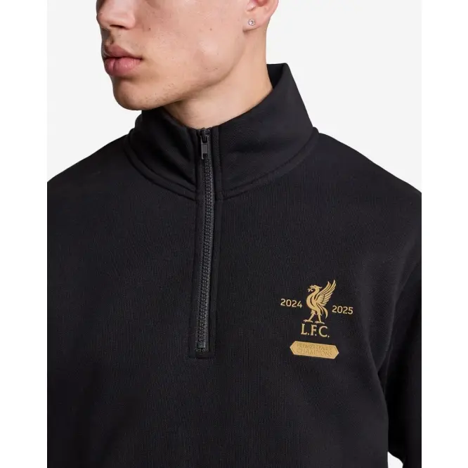 Celebrate Liverpool FC’s record 20th League Title with the LFC Mens Champions 1/4 Zip Sweater Black, featuring a proud display that the Reds are Champions again on a fashionable addition to your wardrobe!