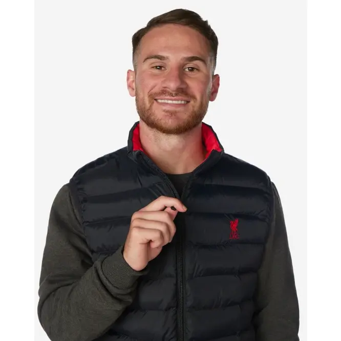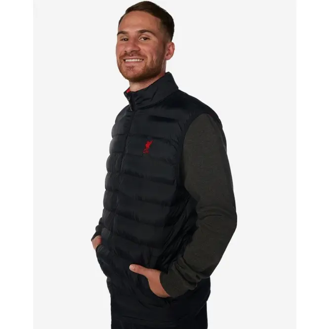 - Black full zip up gilet jacket with Red Liverbird & LFC embroidery to left chest.