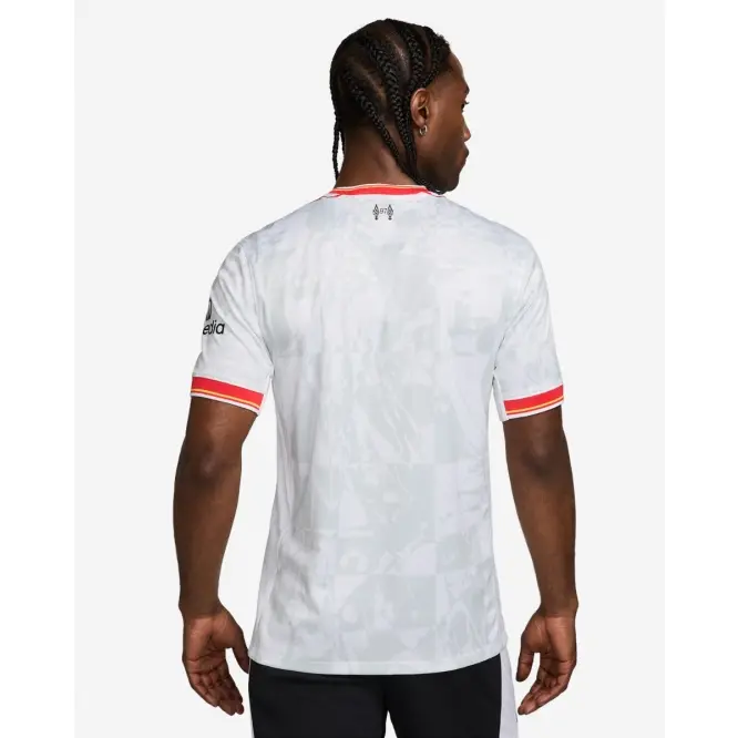 The 24/25 Nike Liverpool FC Third Kit is worn by both the Men’s and Women’s squads at LFC. This season’s strip take inspiration from female athletes, artists and cultural movements that have left their mark on the Club and their City. The famous Nike swoosh has been doubled, to signify the unity between both teams and points upward to celebrate the rise of Women’s Football. Together we can inspire the next generation of athletes. Together we rise.