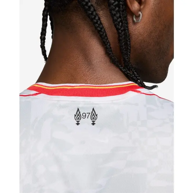 • White Jersey with LFC Liverbird badge, LFC sponsors and a unique upward dual Nike swoosh.