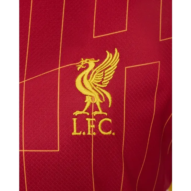 Chrome Yellow pattern design sees a modernised take on the legendary 84 Home Shirt, a season which saw the Reds become European Champions for the 4th time in Rome and the first English Club to win a Treble of major honours.