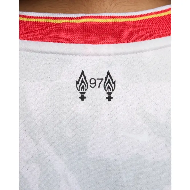 • White Jersey with LFC Liverbird badge, LFC sponsors and a unique upward dual Nike swoosh.