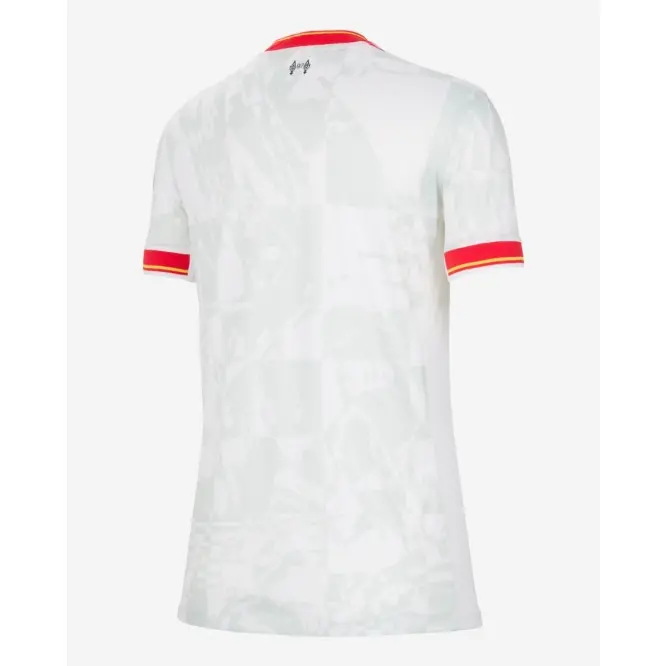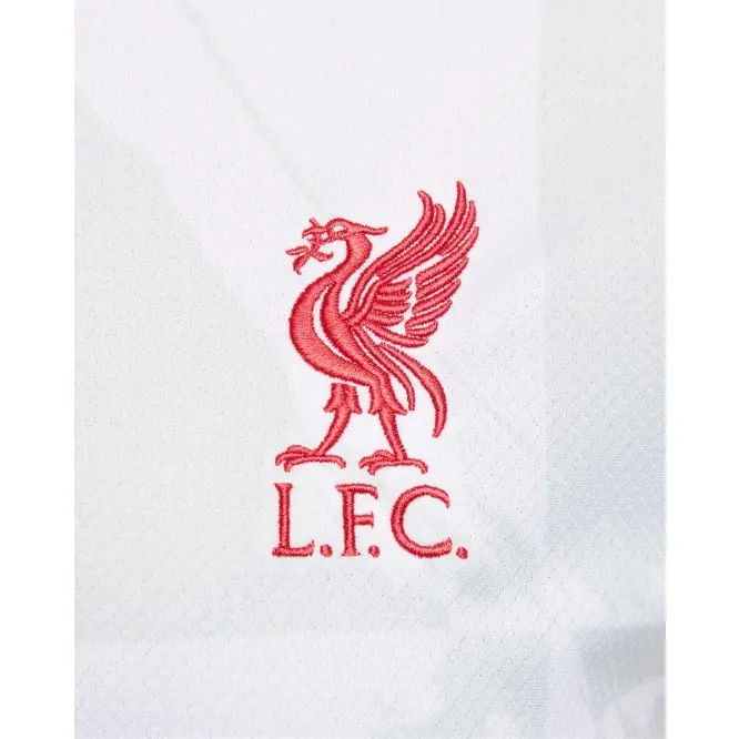 - White Jersey with LFC Liverbird badge, LFC sponsors and a unique upward dual Nike swoosh.