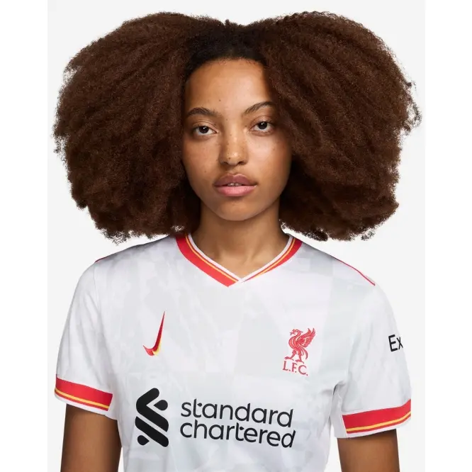 The 24/25 Nike Liverpool FC Third Kit is worn by both the Men’s and Women’s squads at LFC. This season’s strip take inspiration from female athletes, artists and cultural movements that have left their mark on the Club and their City. The famous Nike swoosh has been doubled, to signify the unity between both teams and points upward to celebrate the rise of Women’s Football. Together we can inspire the next generation of athletes. Together we rise.
